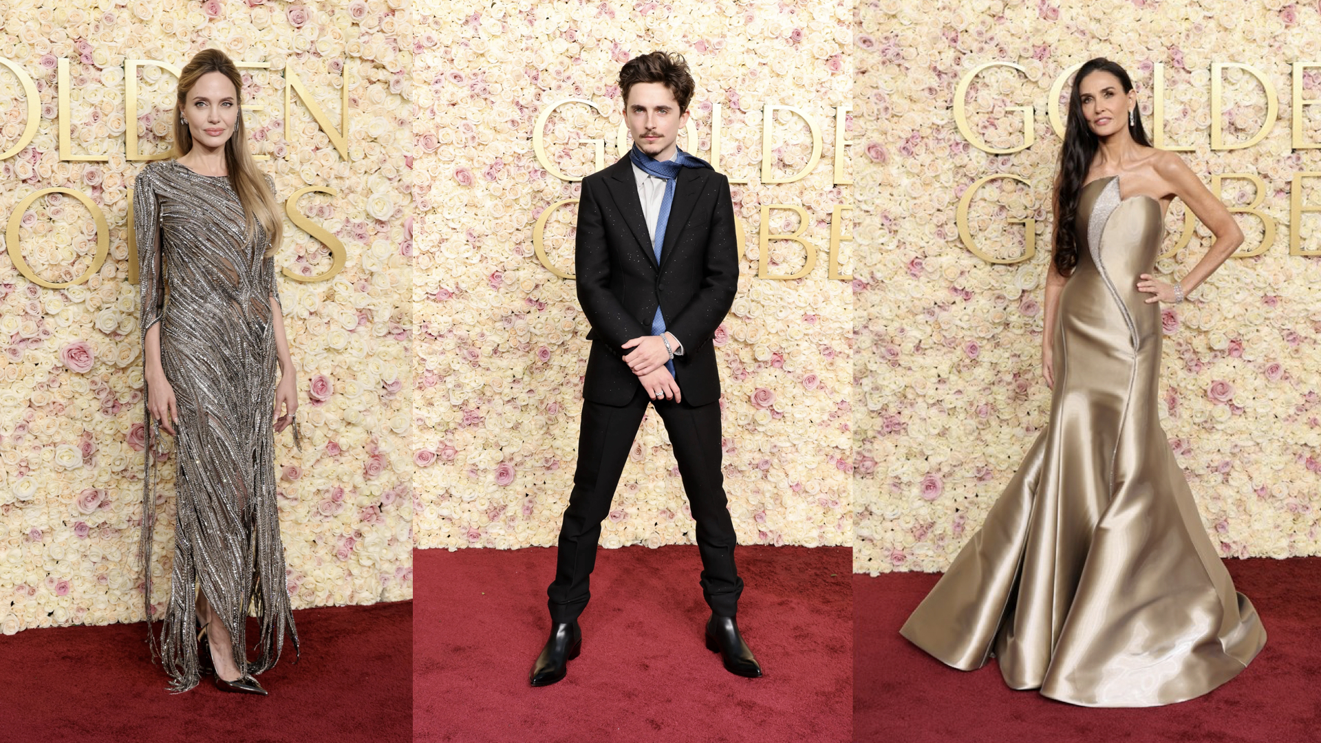 เริ่มจากชุดของเหล่าเซเลบริตี้ที่ในปีนี้โดดเด่นด้วยความแวววาวและเป็นประกาย ไม่ว่าจะเป็นชุดจากคอลเลคชั่น Spring 2025 โดย Alexander McQueen ที่นักแสดงสาวสุดฮอตตลอดกาล Angelina Jolie สวมใส่อันโดดเด่นด้วยเส้นสายอันระยิบระยับสีเงินเป็นประกาย หรือชุดเกาะอกอสมมาตรสีเมทัลลิคประดับแถบเพชรเป็นประกายจาก Giorgio Armani ที่สวมใส่โดย Demi Moore ตลอดจนชุดสูทสีดำสอดแทรกไปด้วยประกายเพชรจาก Tom Ford ที่ Timothée Chalamet สวมใส่