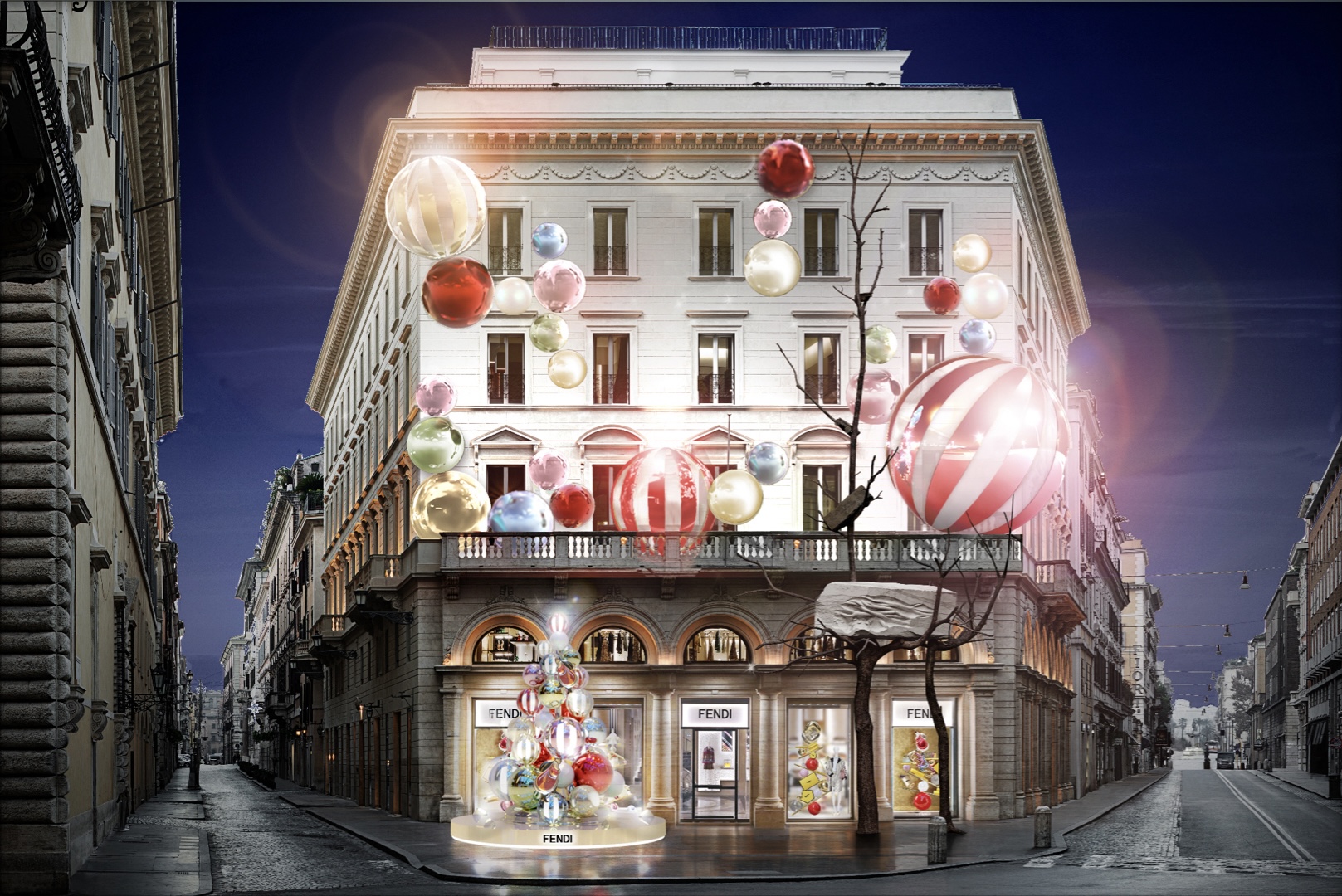 Fendi เข้าร่วมเป็นอีกหนึ่งผู้เล่นที่ร่วมส่งต่อความสุขให้กับฤดูกาลแห่งความรื่นเริงด้วยเช่นกัน ผ่านการออกแบบตกแต่งบูติคสำคัญของแบรนด์ในหลากหลายพื้นที่ ไม่ว่าจะเป็น Palazzo FENDI Seoul, London New Bond Street, Tokyo Ginza 6 และ Palazzo FENDI Tokyo Omotesando ที่ได้รับการประดับด้วยต้นคริสต์มาสขนาดใหญ่ ในขณะที่สาขา Palazzo FENDI Roma ได้รับการตกแต่งอย่างเหนือระดับยิ่งกว่าผ่านการตกแต่ง façade ของบูติคด้วยลูกบอลแก้วขนาดใหญ่ในสีสันที่เปล่งประกาย