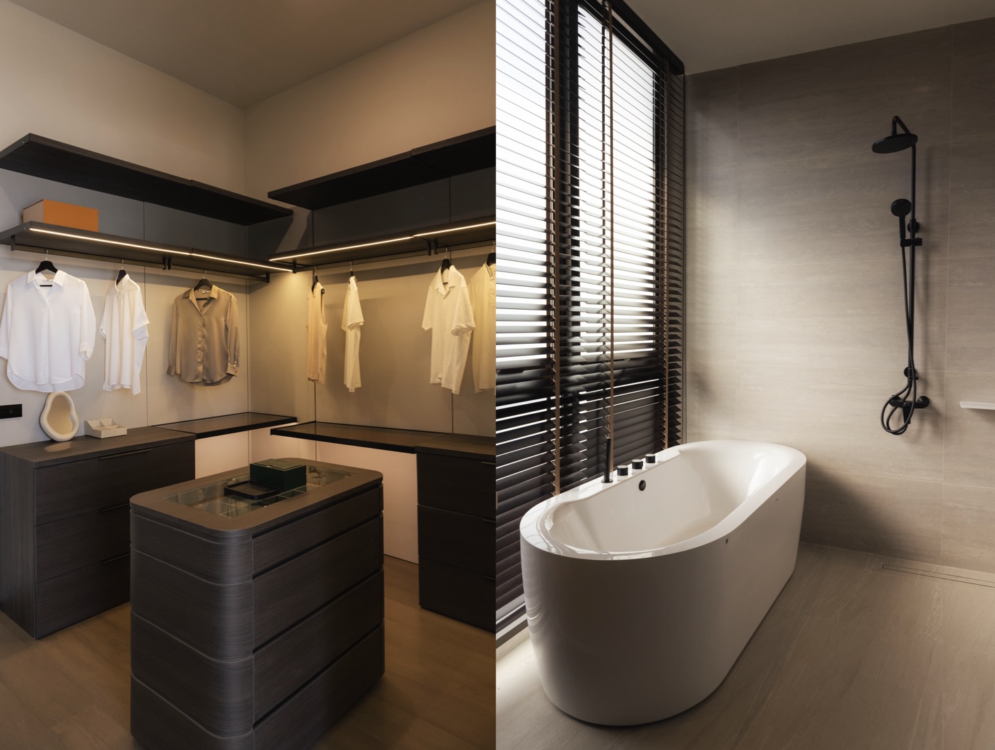 นอกจากนี้เหล่าเซเลบริตี้ชื่อดังยังร่วมแนะนำเคล็ดลับการเลือกบ้านหรูพร้อมมุมโปรดที่ชื่นชอบในแบบฉบับของตนเอง เริ่มจากคู่รักมากความสามารถ นิ้ง-โศภิดา และเจได-ไตรนุภาพ จิระไตรธาร เผยว่า “บ้านที่เราเลือกอยู่อาศัยจะเลือกจากพื้นที่ใช้สอยที่เพียงพอต่อการทำกิจกรรมต่างๆ ในครอบครัว ไม่ว่าจะเป็น โซนครัวสำหรับทำอาหาร ห้องรับแขกที่รองรับสมาชิกในบ้าน และพื้นที่ส่วนตัวสำหรับลูกชายที่ชอบออกกำลังกายและเล่นกีฬา ส่วนเรื่องดีไซน์เราจะเลือกบ้านที่มีดีไซน์เรียบง่ายแต่แฝงไปด้วยความหรูหรา เพิ่มความสดใสได้ด้วยการตกแต่งด้วยต้นไม้และของแต่งบ้านที่ยังคงคอนเซปต์ความเรียบหรูเหมาะกับการอยู่อาศัยในทุกวัน ซึ่งหลังจากเยี่ยมชมโครงการนี้ เราชอบที่มีแสงธรรมชาติส่องถึงห้องต่างๆ และห้องนอนก็มีพื้นที่ค่อนข้างกว้างสามารถวางเตียงนอนและโซฟาเพื่อทำกิจกรรมดูทีวีได้ รวมถึงการออกแบบ Walk-in Closet ที่ใช้งานได้จริงและพื้นที่ห้องนอนที่โปร่งโล่ง