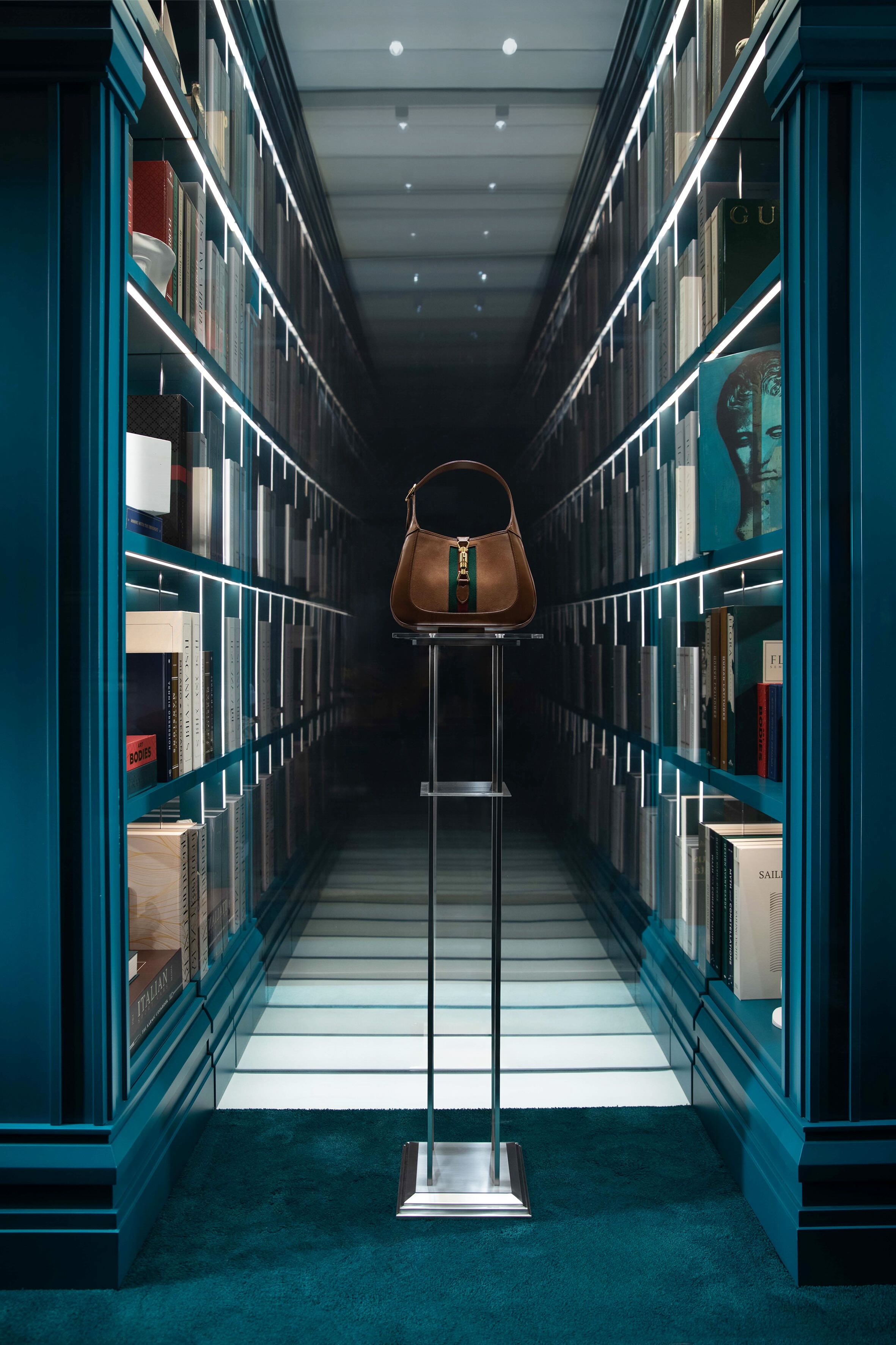 หัวใจสำคัญของแนวคิดการออกแบบในครั้งนี้ไม่ใช่อื่นใด หากแต่เป็นการเล่นล้อไปกับศาสตร์แห่งแสง ผ่านขั้นวางกระจกที่ดึงดูดถูกสายตาที่แวะเวียนผ่าน ให้ต้องมนต์ไปกับรายละเอียดเล็กใหญ่ของการจัดแสดง ไม่ว่าจะเป็นหนังสือ รูปปั้นขนาดเล็ก ไปจนถึงแบบจำลองที่ได้รับแรงบันดาลใจจากที่คั่นหนังสือในคลังเก็บของ Gucci ที่ซึ่งทุกองค์ประกอบล้วนมีบทบาทสำคัญในตัวเองชนิดที่ไม่สามารถทดแทนได้ด้วยสิ่งใด ทำให้การจัดวางเชิงศิลป์นี้ไม่เพียงเพิ่มเสน่ห์ทางสายตา แต่ยังสื่อถึงเส้นทางแห่งความคิดสร้างสรรค์ที่ไม่หยุดนิ่งของ Gucci และเพื่อยกระดับประสบการณ์ให้เหนือกว่า Gucci ได้ร่วมมือกับ Luca Pignatelli ศิลปินชาวอิตาเลียนผู้โด่งดัง มาร่วมยกระดับความสมบูรณ์แบบให้กับ Endless Narratives อีกด้วยเช่นกัน