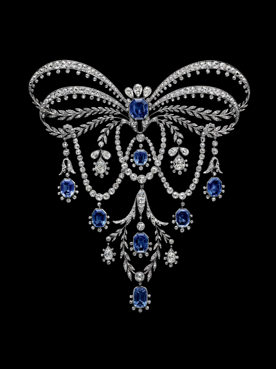 เข็ดกลัดนางระบำโดย Van Cleef & Arpels จากปี1951 ตัวเรือนแพลตินัมประดับแซฟไฟร์ © Albion Art Jewellery Institute,