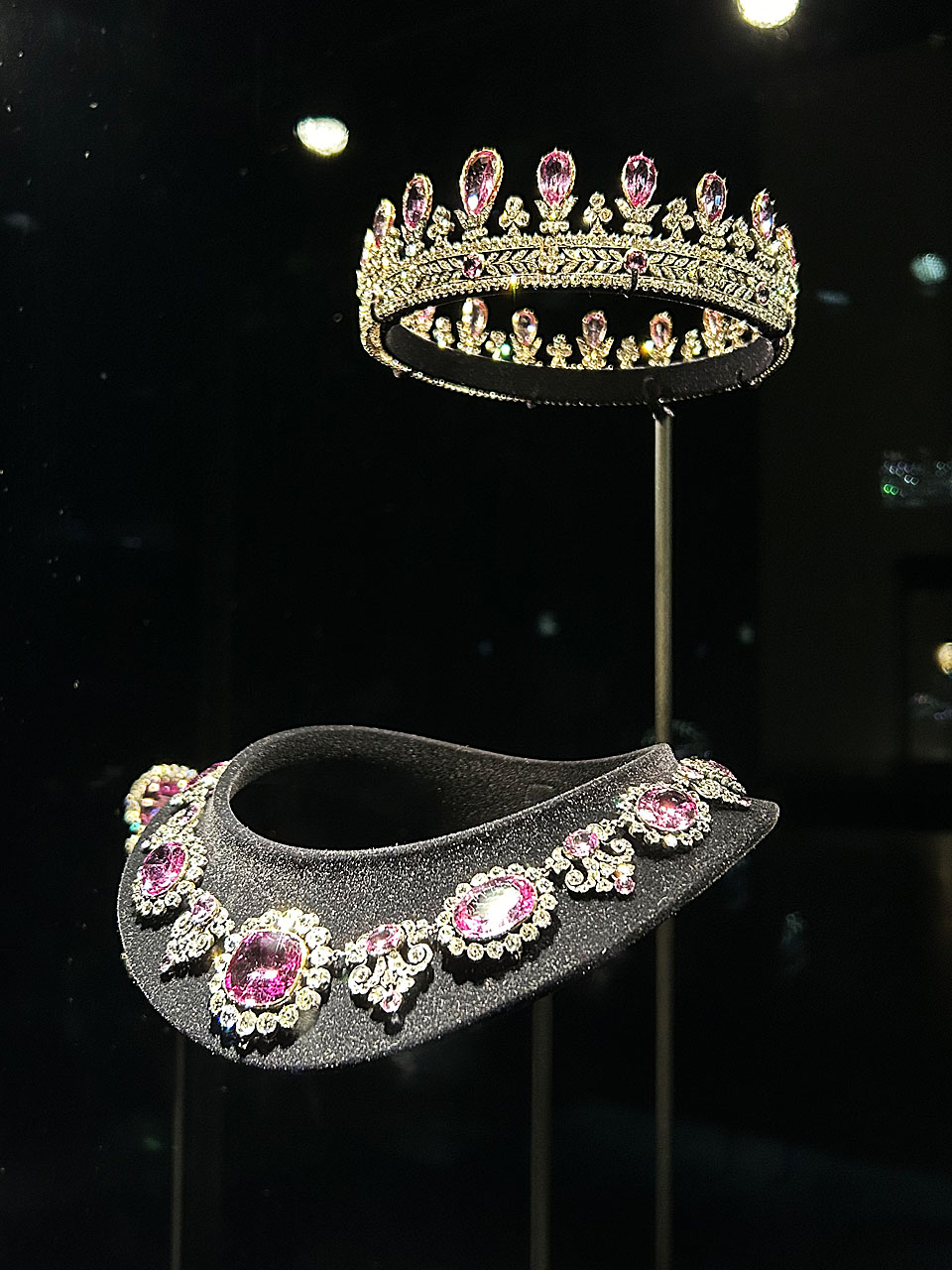 เซ็ตเครื่องประดับโทปาศสีชมพูจากราชวงศ์ Hohenzollern สันนิษฐานว่ามาจากเยอรมนี ในปี1810 ตัวเรือนทองและเงินประดับโทปาซสีชมพูและเพชร คอลเลคชั่นส่วนตัว