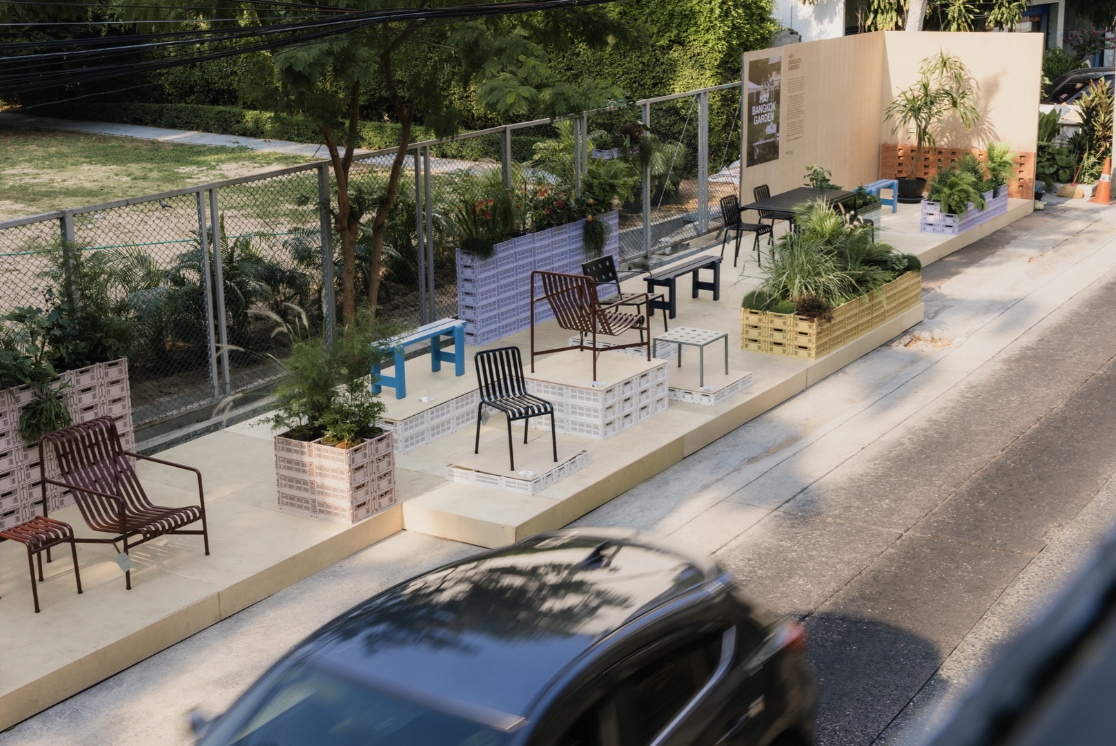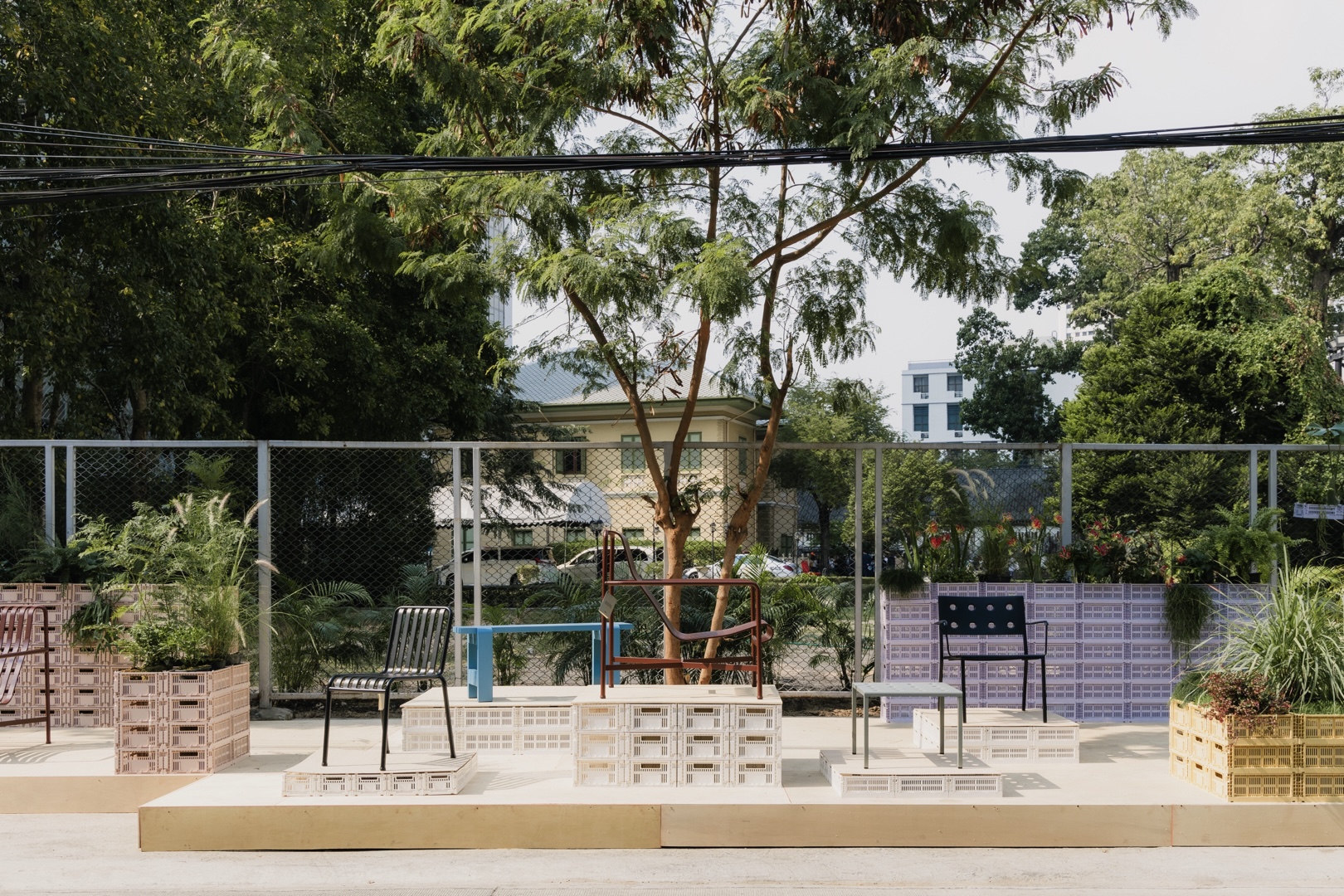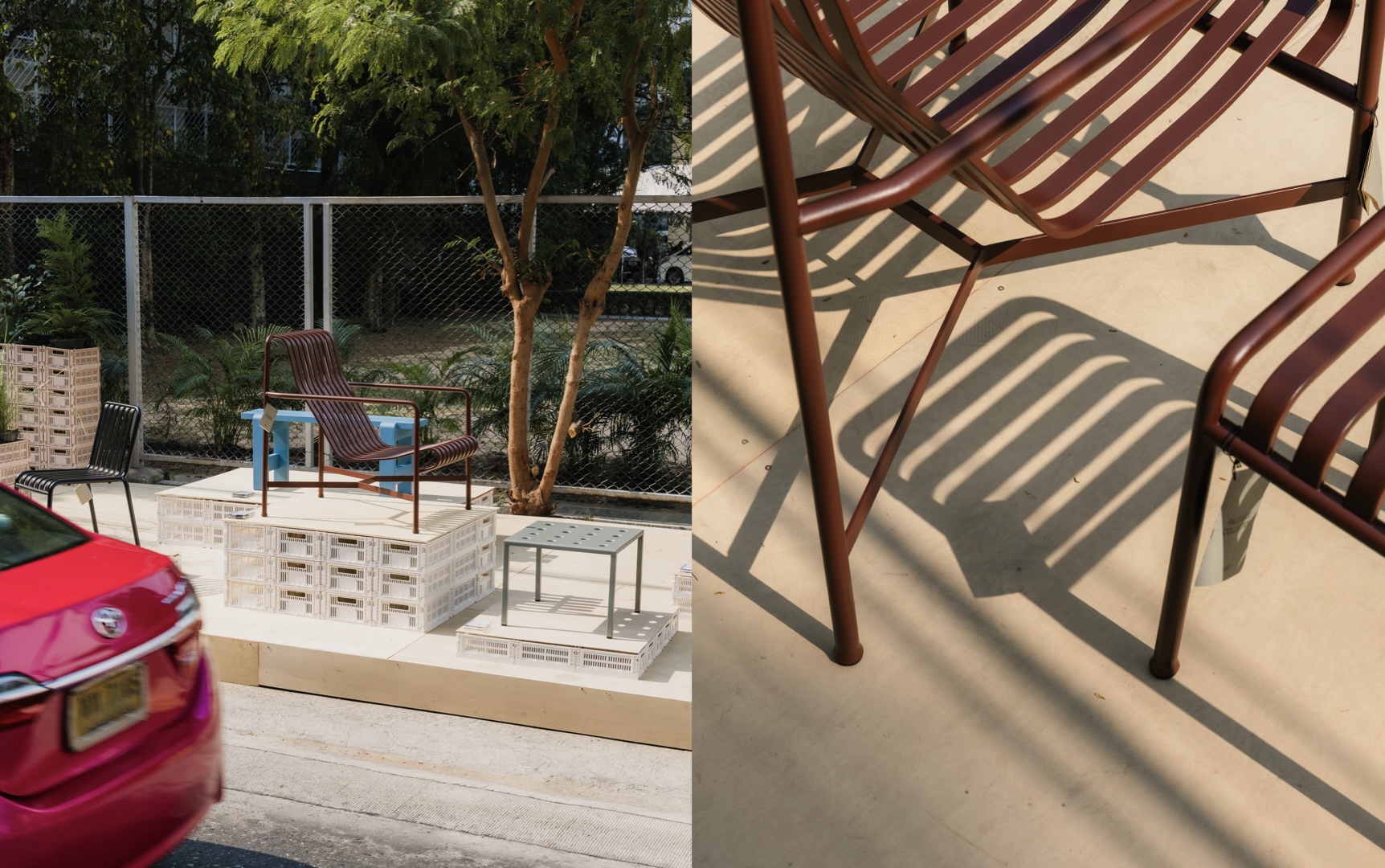 นิทรรศการครั้งนี้เลือกใช้ Colour Crate หรือลังพลาสติกหลากสีของ HAY ซึ่งผลิตจากขยะพลาสติกในครัวเรือนมาสร้างเป็นโครงสร้างหลักในการจัดสวนขนาด 100 ตารางเมตร พร้อมประดับด้วยพันธุ์ไม้พื้นบ้านของไทย ในบรรยากาศที่อบอุ่นและชวนให้ผู้คนเข้ามาพักผ่อน ดื่มด่ำไปกับสีสันของดอกไม้และเฟอร์นิเจอร์ Outdoor ที่เป็น Design Original ของ HAY พื้นที่แห่งนี้สะท้อนการผสมผสานระหว่างศาสตร์การออกแบบแบบเดนมาร์กและวัฒนธรรมเมืองกรุงได้อย่างลงตัว ณ บริเวณหน้าร้าน HAY Bangkok ในซอยเจริญกรุง 30 โดยยึดมั่นในแนวคิดที่ว่า “งานออกแบบที่ดีสามารถเชื่อมโยงผู้คนเข้าด้วยกัน”