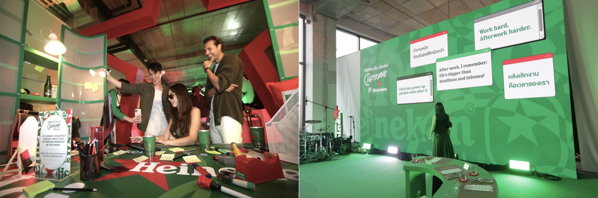 แคมเปญนี้สะท้อนถึงแนวคิดของ Heineken Experience ที่มุ่งเน้นการสร้าง Quality Socializing โดยเชื่อว่าชีวิตทางสังคมที่สดใหม่จะนำไปสู่ประสบการณ์ที่คุ้มค่ามากขึ้น และด้วยความเข้าใจในไลฟ์สไตล์ของคนทำงานยุคใหม่ Co-Afterwork Space จึงถูกออกแบบมาเป็นพื้นที่แห่งการรีเฟรชตัวเองหลังเลิกงาน โดยเปิดโอกาสให้ผู้คนได้พบปะกับชุมชนที่มีความสนใจร่วมกัน ต่อยอดเครือข่ายทางสังคม และแลกเปลี่ยนมุมมองใหม่ ๆ ผ่านกิจกรรมที่หลากหลายภายในงาน