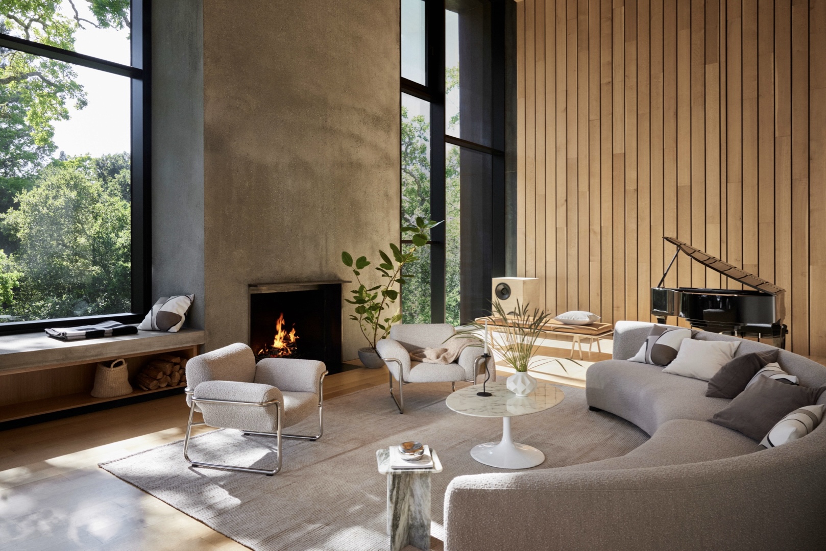 สำหรับห้องนั่งเล่น ทางแบรนด์เลือกที่จะนำเสนอพรมโทนสีอบอุ่นและผ้าห่มเนื้อนุ่มที่ช่วยเพิ่มสัมผัสความสบายให้กับโซฟา ปลอกหมอนอิงหลากสไตล์ รวมไปถึงลวดลายพิมพ์กราฟิกและผ้ากำมะหยี่ช่วยเพิ่มมิติให้กับห้อง ขณะที่เชิงเทียนเซรามิกและถาดหินอ่อนได้ถูกนำเสนอในฐานะของตัวกลางที่ช่วยเติมเต็มความสมบูรณ์แบบให้กับพื้นที่พักผ่อน