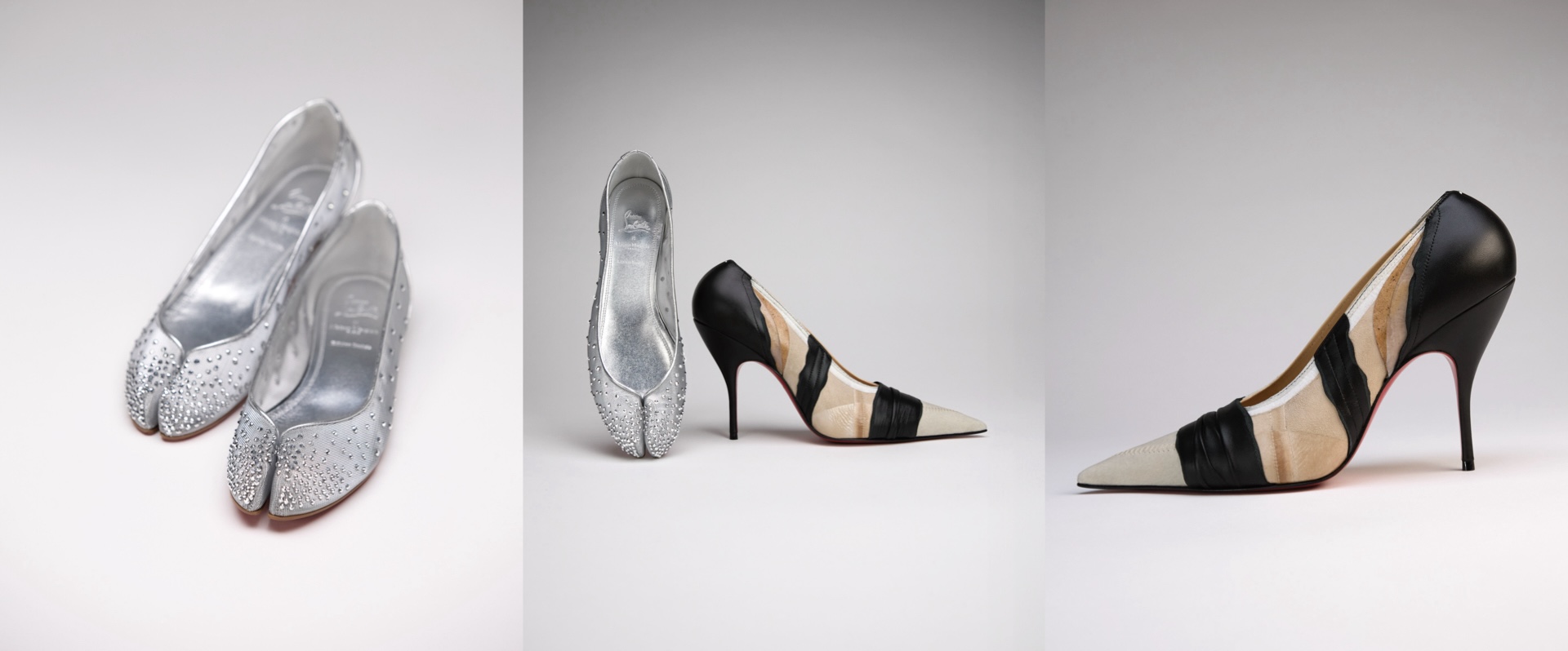 ไม่น้อยหน้ากันสำหรับ Christian Louboutin by Maison Margiela ที่คอลเลคชั่นสุดพิเศษนี้ได้สะท้อนมุมมองใหม่ของ Louboutin ที่ได้รับการตีความผ่านแนวคิด deconstruction อันเป็นเอกลักษณ์ของ Maison Margiela โดย John Galliano ได้นำเทคนิค decortiqué ซึ่งเป็นการลดทอนรายละเอียดให้เหลือเพียงโครงสร้างพื้นฐาน เพื่อเผยให้เห็นความบริสุทธิ์ของงานออกแบบ ซึ่งประกอบไปด้วย 4 ดีไซน์หลัก ได้แก่