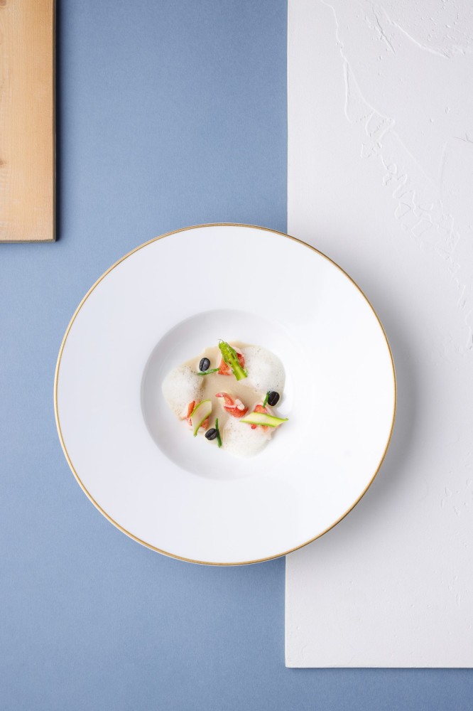 Kicking things off is Kyoto King Crab from Japan served with carrot, beetroot yuzu and Amarelli liquorice sorbet, a combination of ingredients that gives contrast to the inherent richness and sweetness of the king crab and refreshes the palate. Next is Sicilian Red Prawn centred with stracciatella and almond panna cotta, cherry blossom and Calvisius Royal caviar; followed by a uniquely layered dish of Boston Lobster dashi and coffee-infused Jerusalem artichoke soup served with green asparagus.