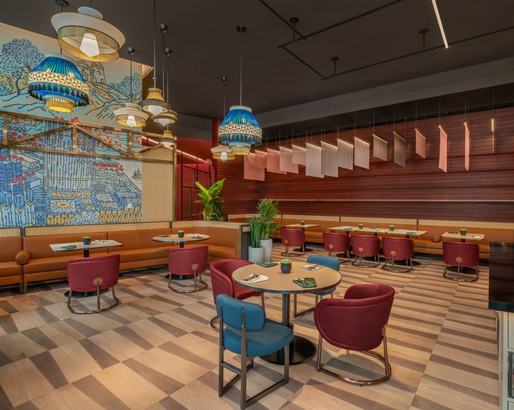 Ranging from 37 to 258 square meters in size, all 430 rooms and 127 suites offer views of bustling Cotai or the city. On the 38th floor, the two-bedroom Extreme Wow Suite (W’s take on the Presidential) offers 270-degree floor-to-ceiling windows, a circular bed, and a generous dining area complete with a kitchenette featuring Portuguese-style ceramic tiles.