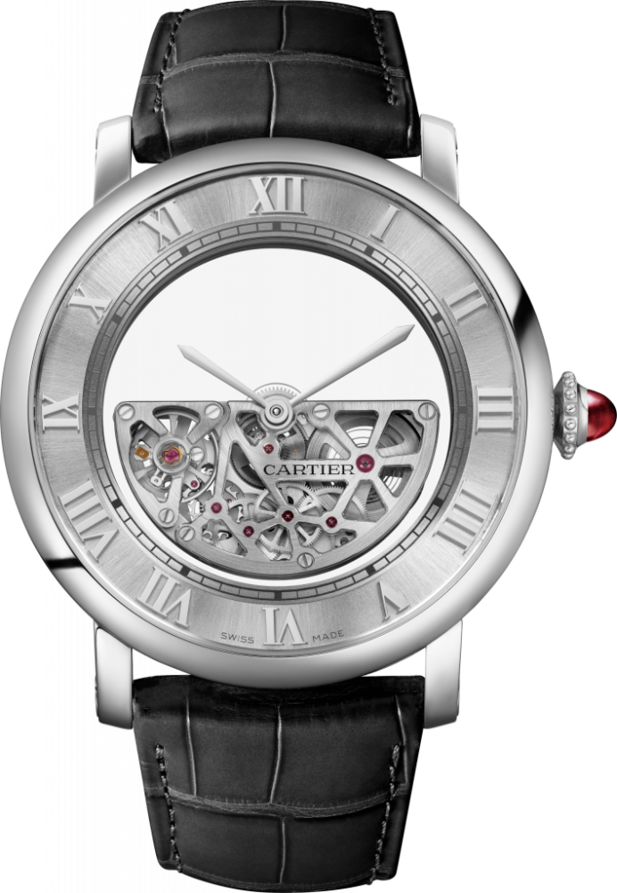 With over a century of know-how and craftsmanship creating mysterious clocks, the house has, over the years, applied the same mesmerising technique to wristwatches. The hands that seemingly suspended in mid-air across the dial of the Cartier Rotonde de Cartier Mysterious Hour Skeleton Watch paved the way for timepieces that challenged the convention of traditional timekeeping.