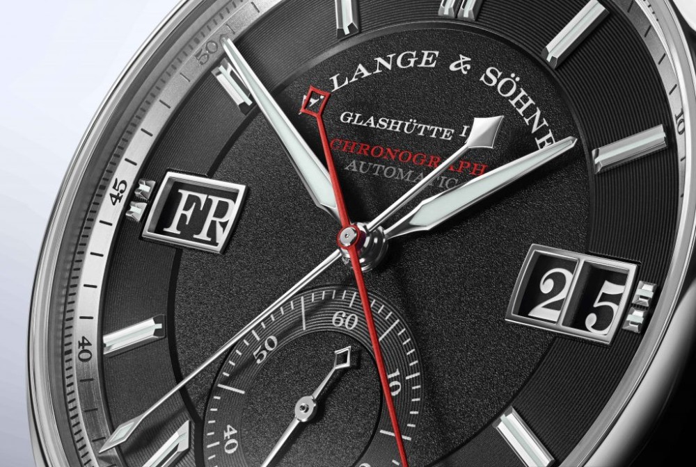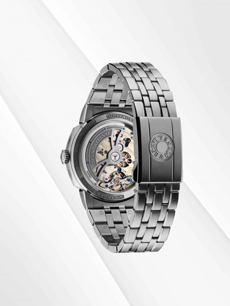 The L156.1 calibre, notable as A. Lange & Söhne’s self-winding chronograph movement debut, has a mainspring barrel that delivers a maximum power reserve of 50 hours when fully wound. It is assembled twice to ensure maximum precision on each timepiece.