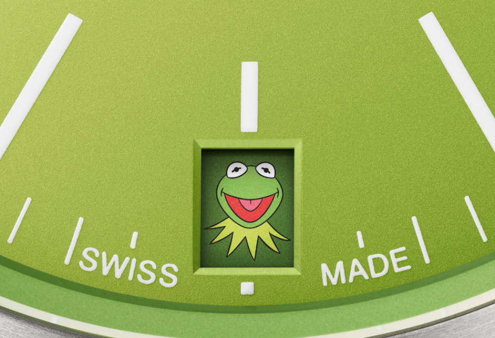 Oris and Disney’s The Muppets Kermit the Frog meet on a special edition of the ProPilot X Calibre 400. The 39mm titanium case features a frog green dial with a date window at the 6 o’clock position. On the first of every month, it will be filled with a Kermit the Frog emoji for a fun and quirky start to the month.