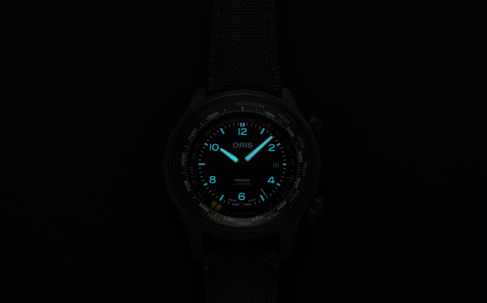 With its new ProPilot Altimeter, Oris claims to have made the world’s only watch to combine a mechanical altimeter with an automatic mechanical movement. With a new pressure box, it can now gauge altitude up to 6,000 metres or 19,700 feet.