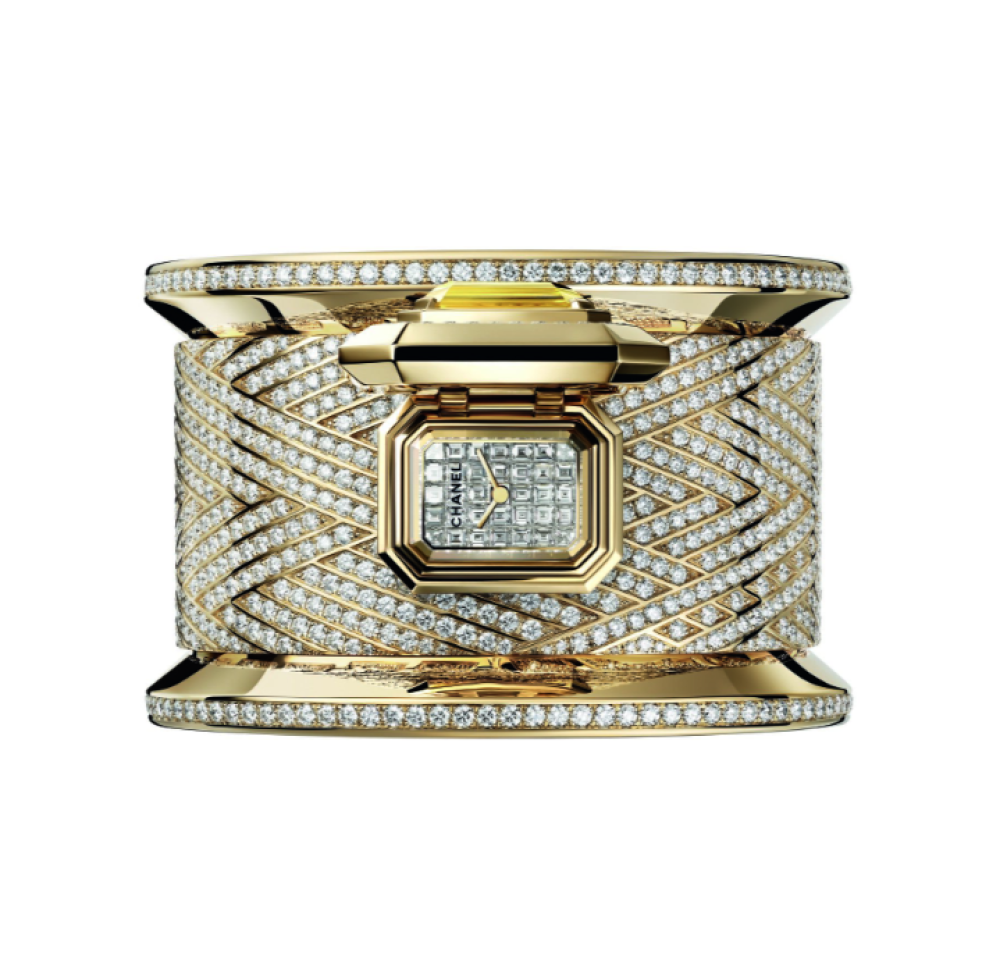 This year, Chanel paid homage to its iconic Rue Cambon ateliers with a capsule collection, Chanel Couture O’Clock, where various tools of the trade – think thimbles, threads, pins, scissors and measuring tapes – inspired Chanel’s watchmaking creations. The most captivating is undoubtedly the Musical Clock Couture Workshop. Part table clock, part musical box, part automaton, the one-off creation orchestrates a choreography of couture busts – made of aluminium ceramic, trimmed with black leather ribbons and decorated with one 18k yellow-gold diamond-set brooch each – to the rhythms of “My Woman” by Al Bowlly, a tune that Gabrielle Chanel liked to hum. At the base, time is displayed on a tape measure, with markings denoting 24 hours.