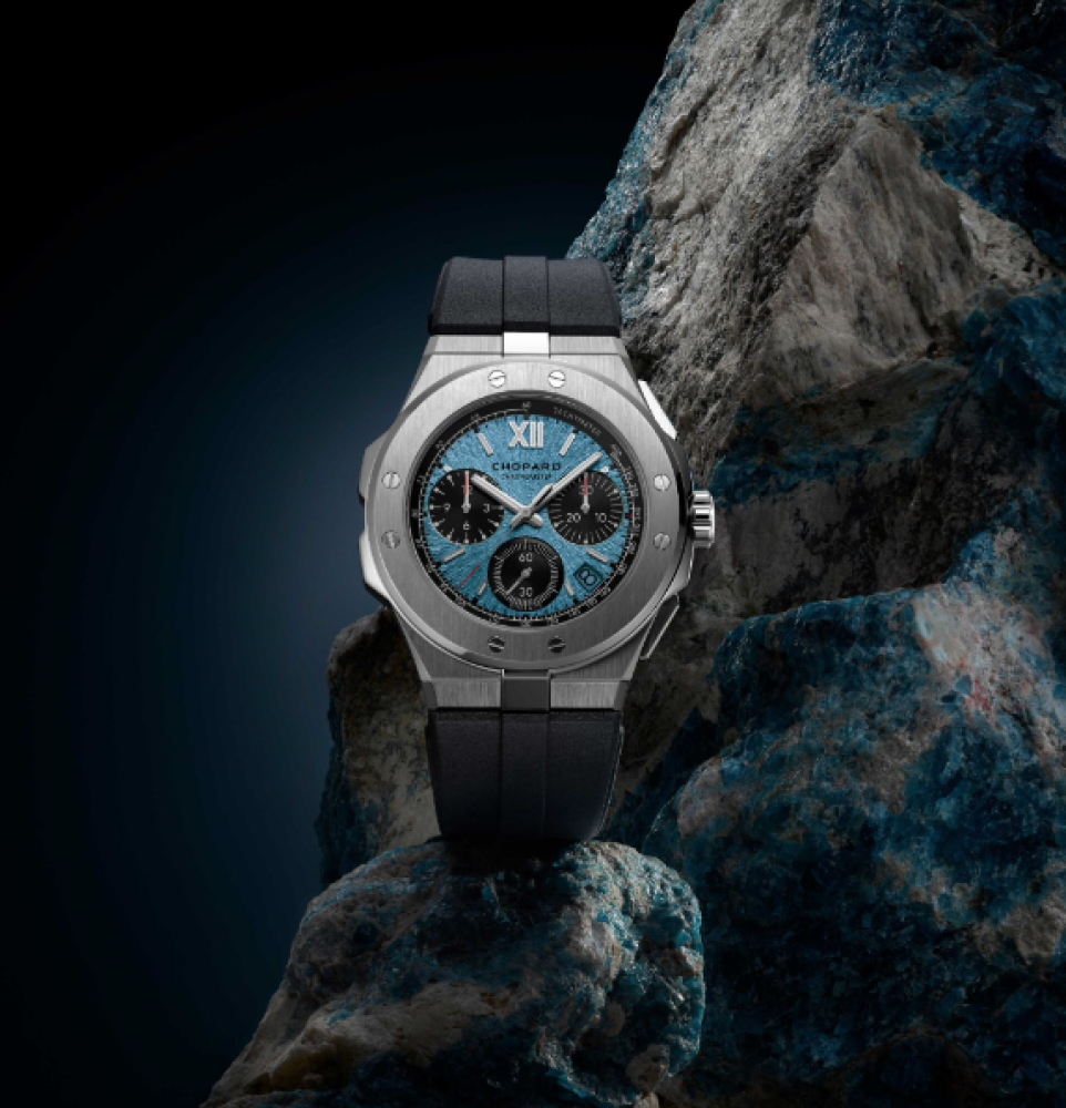 Other highlights from the unveiling include the L.U.C XPS Forest Green, with a 40mm Lucent Steel case (Chopard’s exclusive allow), a stunning 22-carat micro-rotor and twin barrel technology; a water blue Happy Sport limited to 250 pieces; an Imperiale in 18k white gold, fully diamond-set with a diamond, sapphire and mother-of-pearl dial; and the diamond- encrusted 26mm L’Heure du Diamant.