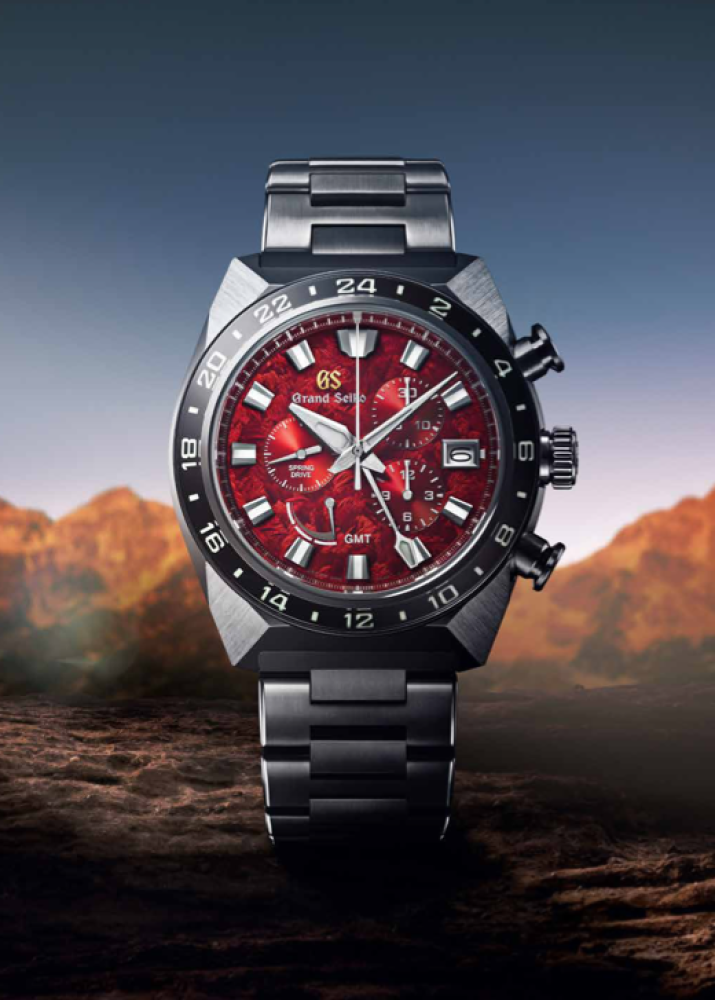 Grand Seiko dropped seven new timepieces at Watches and Wonders 2024, each with its own unique feature and design element showcasing the Japanese watchmaker’s great versatility. This includes the Spring Drive Chronograph GMT, a limited-edition release of 700 pieces to commemorate the 20th anniversary of the 9R Spring Drive calibre. Depending on the angle, the dial colour changes from red to orange, recreating the ebullient hues of a Shinshu (the region where all Grand Seiko Spring Drive creations are made) sunrise, courtesy of a new patented dial-coating technology called “Optical Multilayer Coating” involving a physical vapour deposition process. The presence of the lion