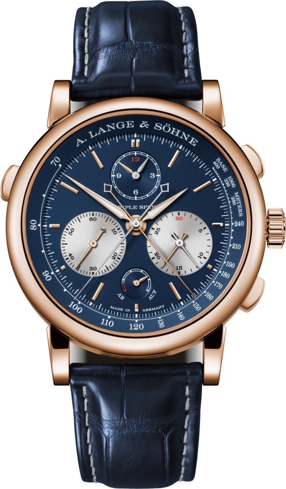 Speed fiends will be ecstatic to learn of an updated 100-watch limited edition version in pink gold. This version features a gorgeous deep blue dial, a rhodié-coloured subsidiary dial and the caliber L132.1 movement.