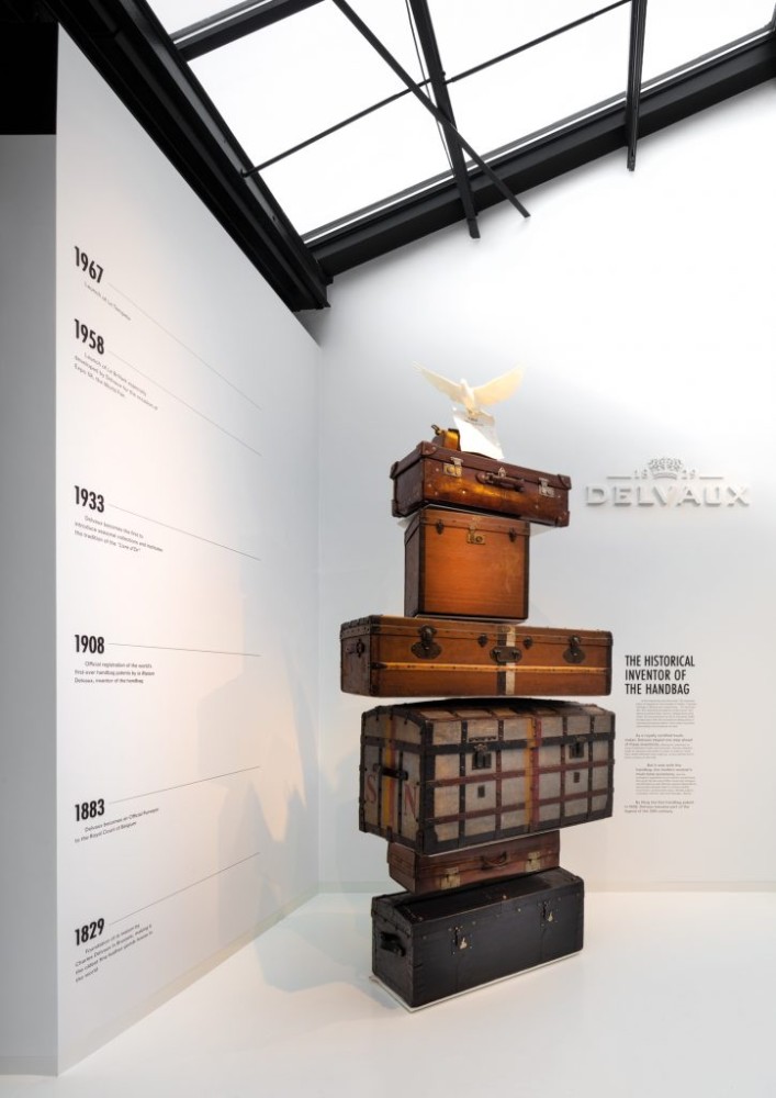 Delvaux began its life as a trunk maker. The second industrial power in the world in the 19th century after Great Britain, Belgium was the first European country to embrace trains after they were invented and had the most developed railway network on the continent. At the Delvaux atelier in Brussel’s Etterbeek is the brand’s museum where a totem pole of trunks greets visitors upon entry.