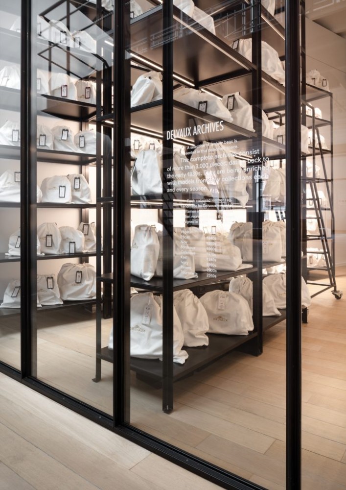 These days, the brand’s selection of handbags includes its iconic Brillant bag, which was created in 1958 for the World Expo in Brussels. Crafted from 64 separate pieces of leather and hardware, the bag takes over 15 hours to make by hand. It’s a heavy piece even when empty. The entire intricate process is laid bare at Delvaux’s atelier, set