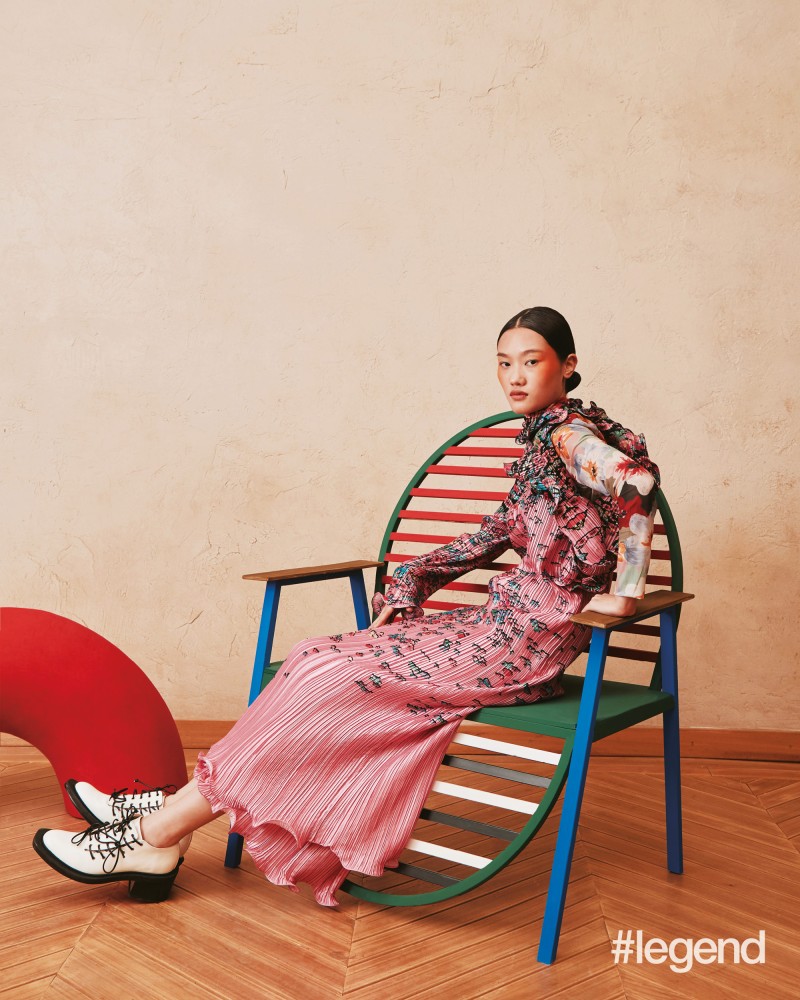 Givenchy pink pleated floral dress and Simone Rocha white lace-up shoes -