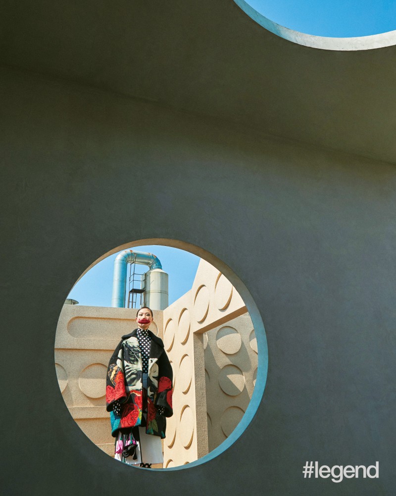Valentino printed coat and Shuting Qiu red metallic mouthpiece
