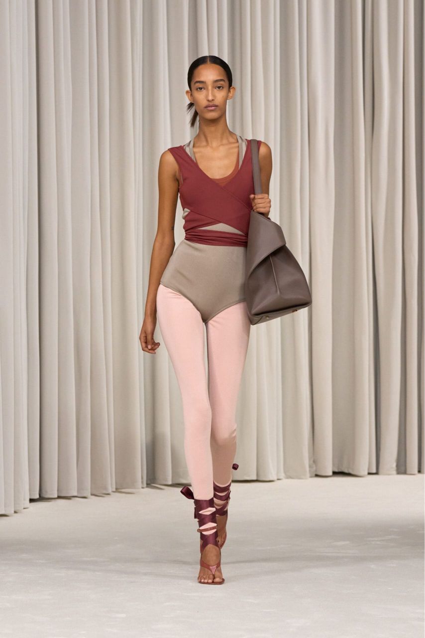 Inspired by Ferragamo’s ballet heritage, Maximilian Davis found a harmony between his personal story and the history of the brand in this collection. The ballet spirit of different decades was integrated, including slim-fitting practice uniforms and second-skin cashmere cotton layers, and opera coats and parachute dresses rendered in silk nylon, suede and organza. For footwear, the pointy Eva pump and the matte silk ribbon on the calf embodied the ballet DNA.