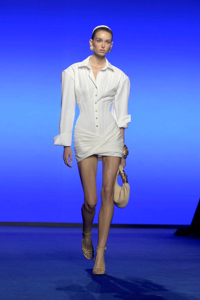 This collection by Daniel Roseberry continued Schiaparelli’s couture approach to creating an essential and timeless wardrobe for women. Classic pieces such as jeans and white shirts were central to the collection, while the hourglass shape was a recurring theme and embroidery was drastically reduced. The unique silhouette of the tennis polo was the highlight of the collection.