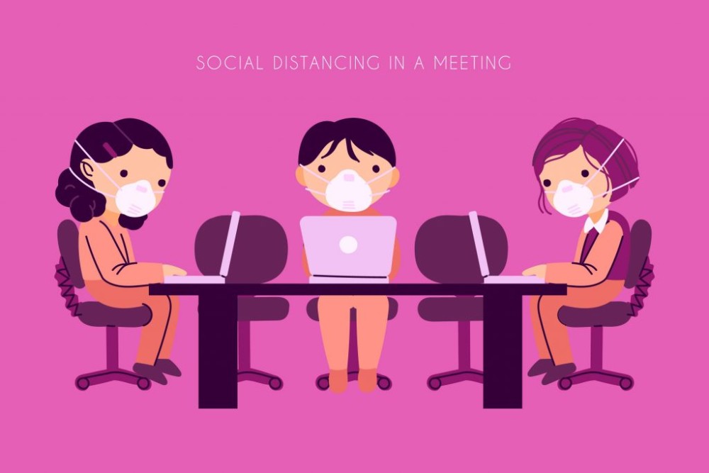 In my opinion, wearing a mask complies with current hygiene standards and everyone should keep theirs on unless eating (such as at a business lunch). Just because you have settled into the confines of a boardroom doesn’t mean it’s safe for you or others to take off your masks. Even if your counterpart takes their mask off, you’re absolutely entitled to keep your mask on.